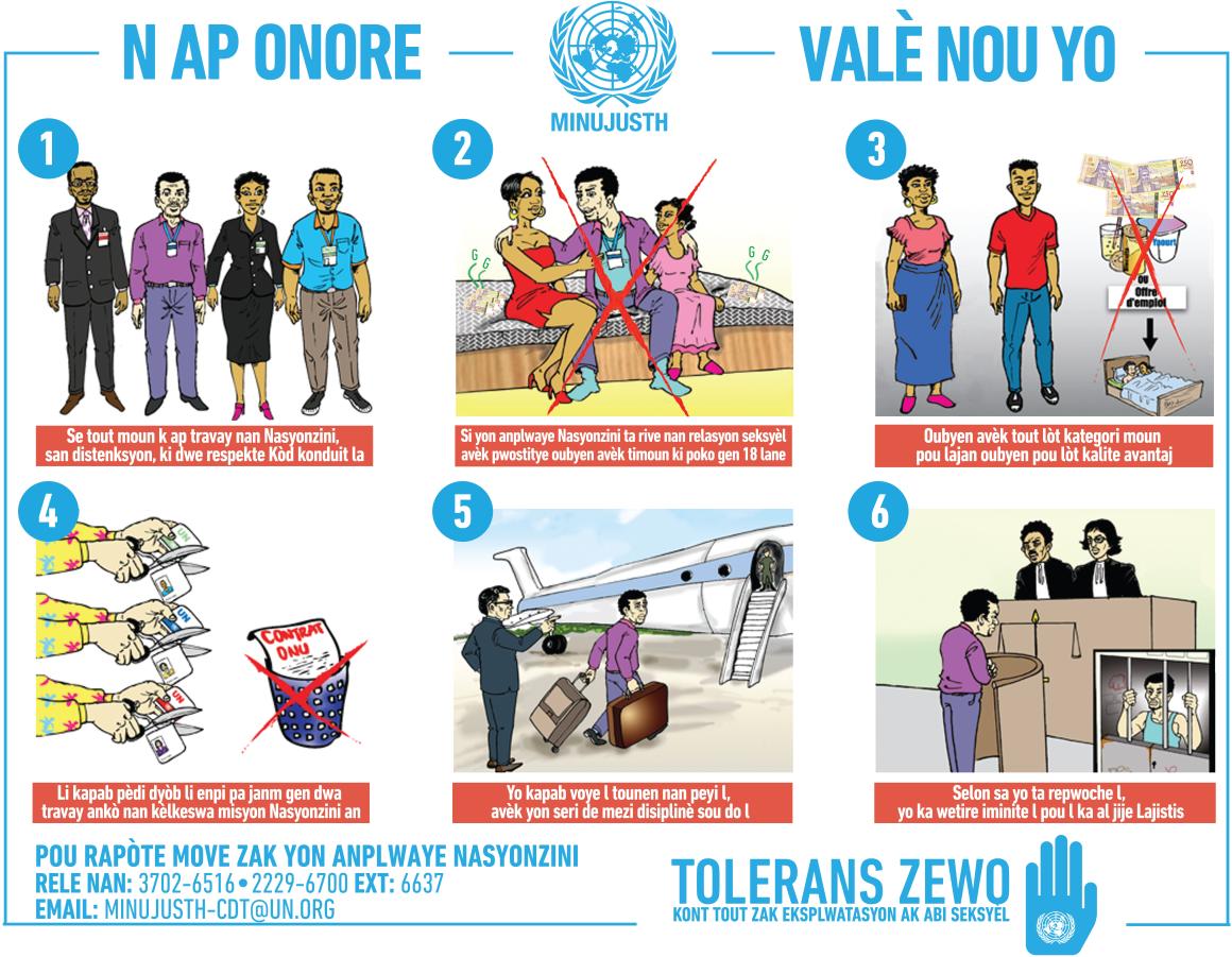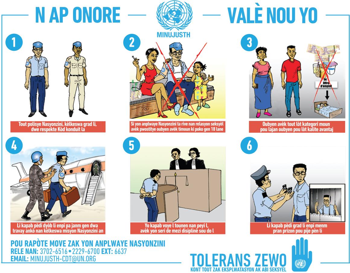 MINUJUSTH will ensure that all allegations of misconduct are immediately and thoroughly investigated. All members of MINUJUSTH personnel, who are found responsible for violations of UN standards of conduct, will be held accountable in the context of disciplinary or criminal proceedings.