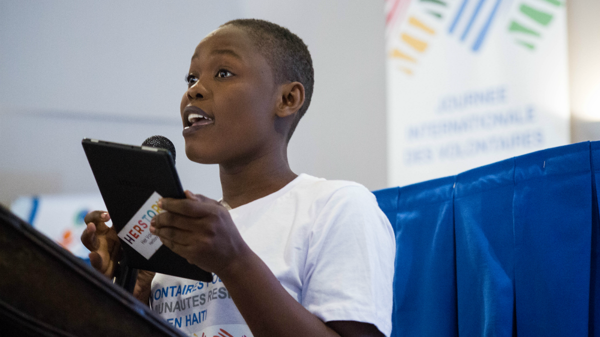 Mathania Charles, 21 years old, is a volunteer for the Toya Fundation, an Haitian NGO dedicated to women empowerment. © Ruvens Ely Boyer / UN / PNUD, 2018