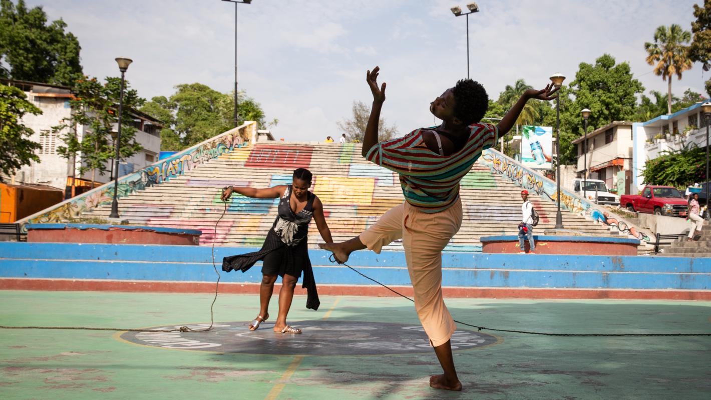 Tuesday 5 June. 6 pm. At Place Jérémie (Port-au-Prince) 34 dancers, accompanied by percussion players gather for a street performance. Aged 16 to 20, these youngsters start contemporary dance moves, following the Port-au-Prince Art Performance (PAPAP) workshops. Organized during 14 days by Haitian artist and choreographer Kettly Noël in collaboration with the United Nations Mission for Justice Support in Haiti (MINUJUSTH), "Tichèlbè" dance lab addresses a crucial issue in Haiti—violence against women, to which this new generation wants to bring attention through dance.
