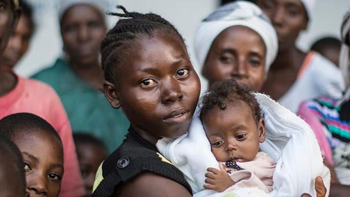 A woman cradles her child in Kavimvira transit centre in the Democratic Republic of Congo's South Kivu Province. She is among hundreds of vulnerable Burundian refugees actively seeking safety there.