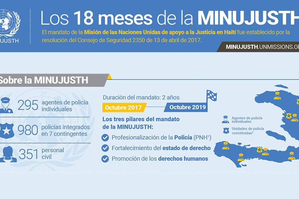 La Misión de las Naciones Unidas de apoyo a la Justicia en Haití (MINUJUSTH) cerrará el 15 de octubre de 2019, marcando la transición hacia una presencia de las Naciones Unidas en el país sin operación de mantenimiento de la paz. El Consejo de Seguridad ha autorizado una prórroga final de seis meses, tal como previsto, al objeto de completar un mandato que se centra en tres pilares: Estado de Derecho, Derechos Humanos y Policía. Para esta ocasión…