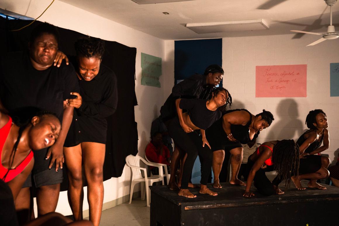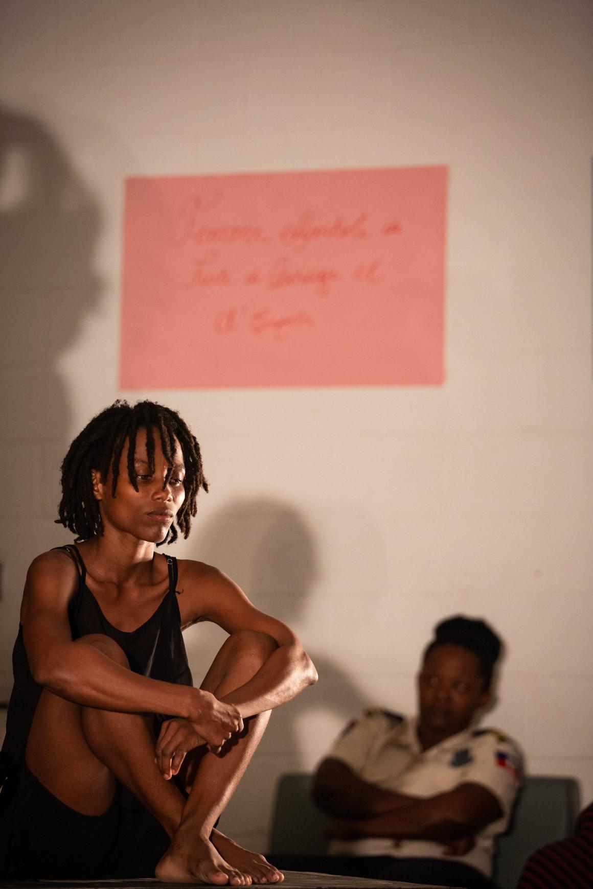 Le temps d’une représentation, la grande salle de la prison civile des femmes de Cabaret s’est transformée en théâtre. D’abord plongés dans le noir, des projecteurs ont fini par éclairer deux petits podiums symbolisant deux cellules sur lesquelles dix comédiennes ont interprété des scènes du quotidiens des détenues. En mettant en lumière les vicissitudes de la vie carcérale bien connues des résidentes, ainsi que la problématique de la détention préventive prolongée, fléau qui gangrène le système judiciaire haïtien, cette pièce a provoqué de vives réactions dans le public.