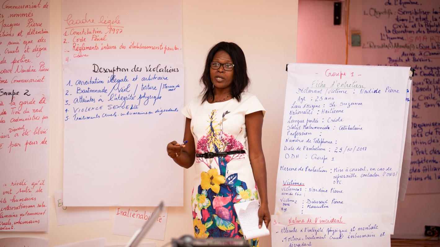 Gonaïves, 25 octobre 2018. Quatrième jour d’une formation sur les techniques de monitoring et d'enquêtes dans le domaine des droits de l'homme. © Leonora Baumann / UN / MINUJUSTH, 2018