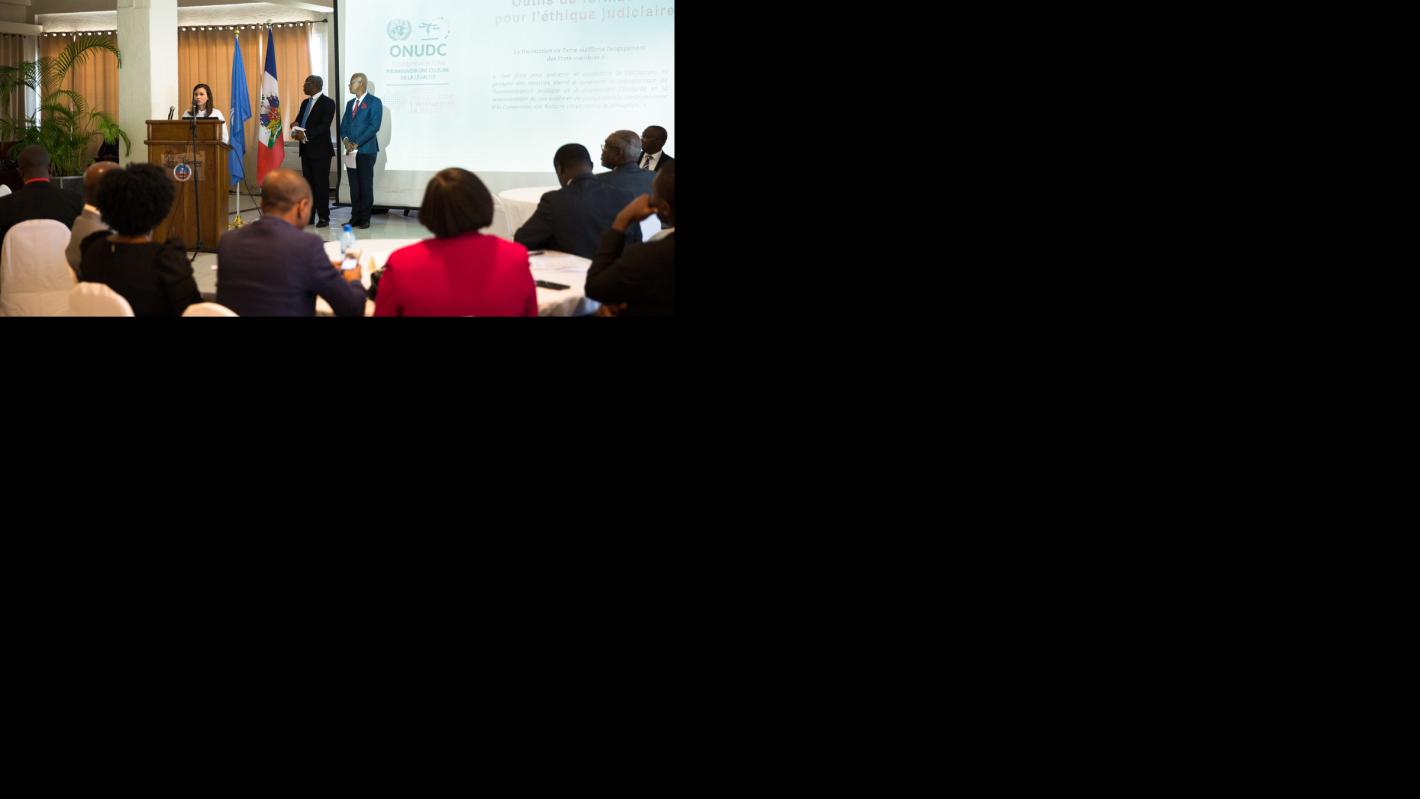 La MINUJUSTH a lancé aujourd'hui en partenariat avec l'État Haïtien et l'Office des Nations Unies contre la drogue et le crime (ONUDC) un programme de formation en ligne sur l'intégrité judiciaire en collaboration avec le Conseil supérieur du pouvoir judiciaire (CSPJ), le Ministère de la Justice et de la Sécurité publique (MJSP), l’École de la Magistrature (EMA) et l’Unité de Lutte contre la Corruption (ULCC).