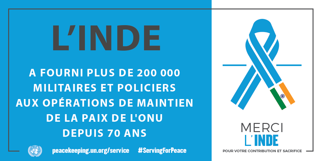 Avec plus de 7 471 militaires et policiers déployés dans une dizaine de missions des Nations Unies dans le monde (en date du 4 juillet 2019), l’Inde est à ce jour le deuxième plus grand contributeur du monde aux opérations de maintien de la paix des Nations Unies. Au total, on estime à plus de 200 000 le nombre de gardiens de la paix envoyés à travers le monde par l’Inde depuis 70 ans.