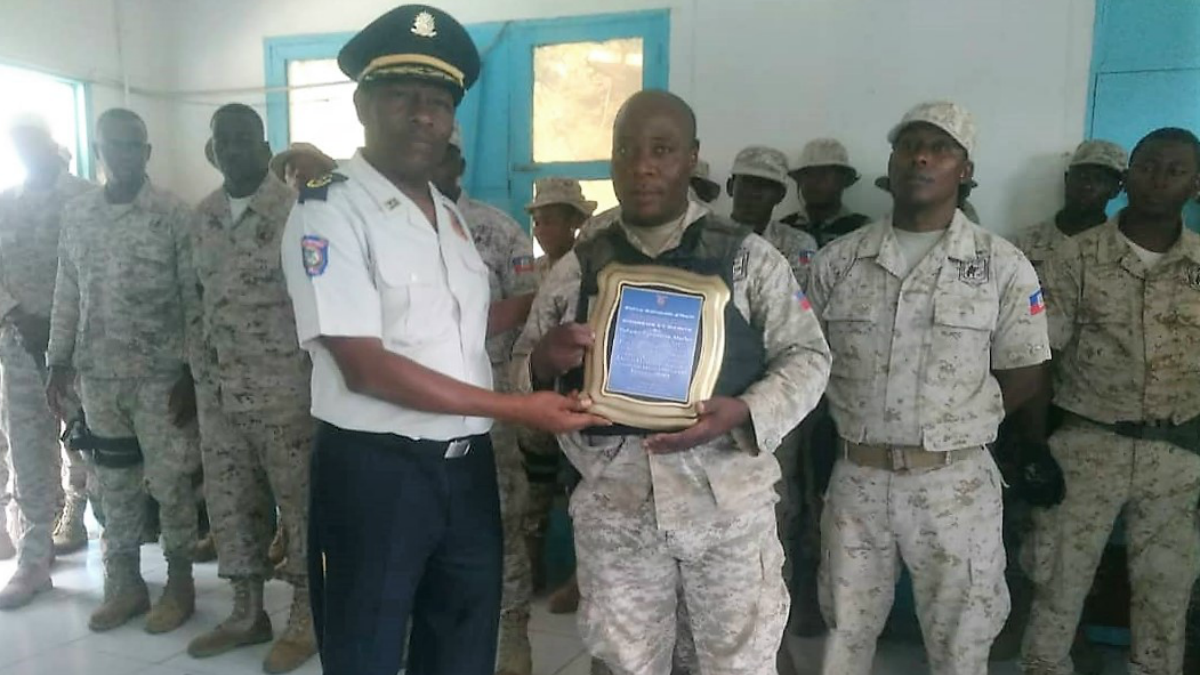 Le 26 février 2019, les agents Faroutine Muller et Lamour Carlo, de l’Unité départementale de maintien de l’ordre (UDMO), basés à Hinche (Centre), étaient récompensés. Les deux éléments s’étaient fait favorablement remarquer les 7 et 8 février 2019 en venant avec succès en renfort de leurs collègues assiégés par des manifestants violents au commissariat de Mirebalais.