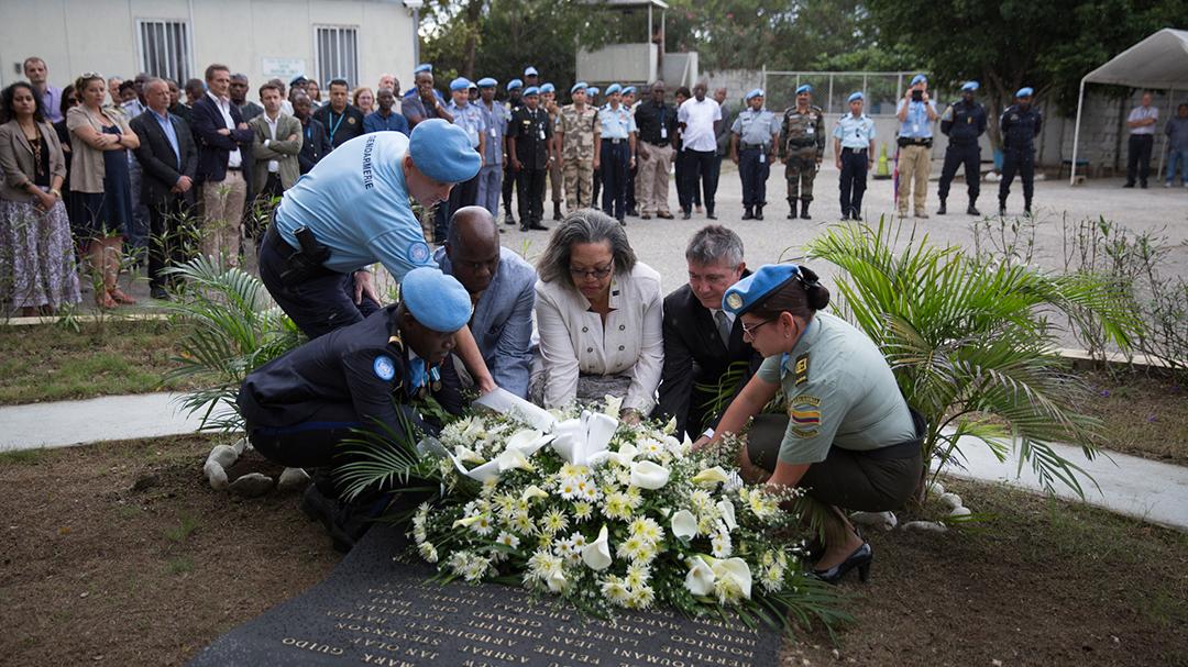« Nous avons une pensée émue pour chacune et chacun d’eux, ainsi que pour leurs proches, leurs conjoints, leurs enfants, leurs parents, et leurs amis. » a partagé la Représentante spéciale du Secrétaire général des Nations Unies en Haïti (RSSG) et chef de la MINUJUSTH, Susan D. Page dans son allocution d’ouverture de la cérémonie.