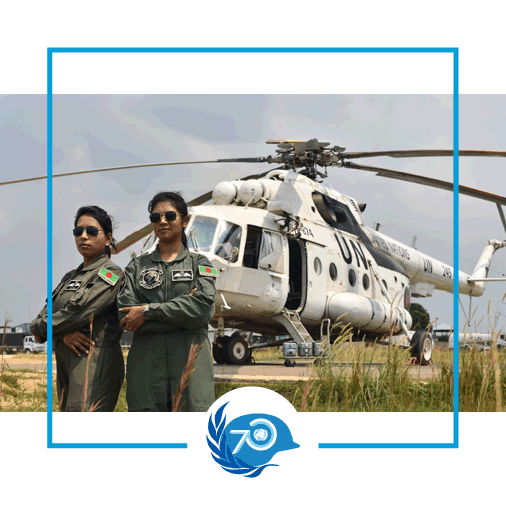 En 2017, le Bangladesh, l’un des plus grands et plus anciens contributeurs de personnels pour le maintien de la paix à l’ONU, a déployé deux femmes pilotes pour la première fois au sein de la Mission de stabilisation de la République Démocratique du Congo (MONUSCO) de l’ONU, avec les Lieutenants de l'armée de l’air Nayma Haque et Tamanna-E-Lutfi.