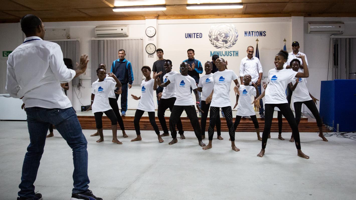 C’est sur le thème “70 ans de service et de sacrifice” que le Département des opérations de maintien de la paix (DOMP) célébrait cette année la Journée des Casques bleus du 29 mai. Pour marquer l’événement, la MINUJUSTH a organisé une séance d'initiation aux danses traditionnelles. L’idée ? Réunir des policiers internationaux des contingents népalais et indiens pour échanger ce patrimoine immatériel avec de jeunes danseurs haïtiens du quartier de Bel Air, à Port-au-Prince.